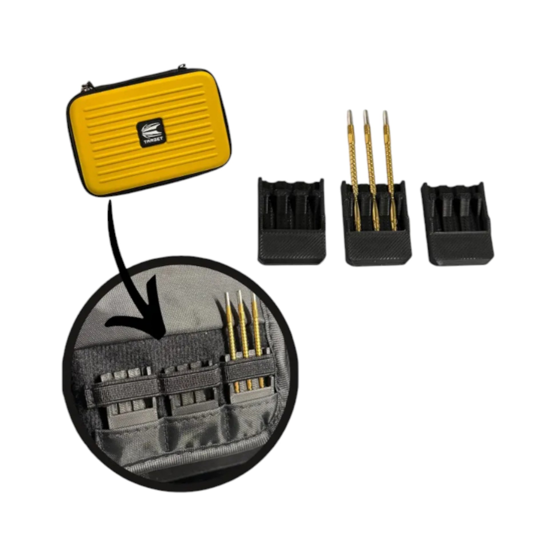 Upgrade your gear with this set of 3 Swiss Point Holders, designed specifically for use with the XL Target Case. These holders are a must-have for any dart player looking to keep their Swiss points securely in place within the XL Target Case.